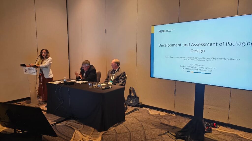 Հանդիպման շրջանակում Կենտրոնի մասնագետ Արփի Խաչատրյանի ներկայացրած զեկույցը վերաբերվում էր բարձր ակտիվությամբ ռադիոակտիվ աղբյուրների ապամոնտաժման, տեղափոխման և պահպանման համար նախատեսված փաթեթավորման նախագծման և գնահատման ծրագրին։ Ներկայացվել են Հայաստանում Կ-120000 իռադիատորից՝ շահագործումից հանված Co-60 աղբյուրների հեռացման աշխատանքները, այդ թվում ռադիակտիվ նյութերի փաթեթավորման նորարարական լուծումը, որը մշակվել է Հունգարիայի և Չեխիայի գործընկերների հետ համագործակցությամբ և ապահովում է աղբյուրների անվտանգ ու կանոնակարգերին համապատասխան տեղափոխումն ռադիոակտիվ թափոնների պահեստարան։